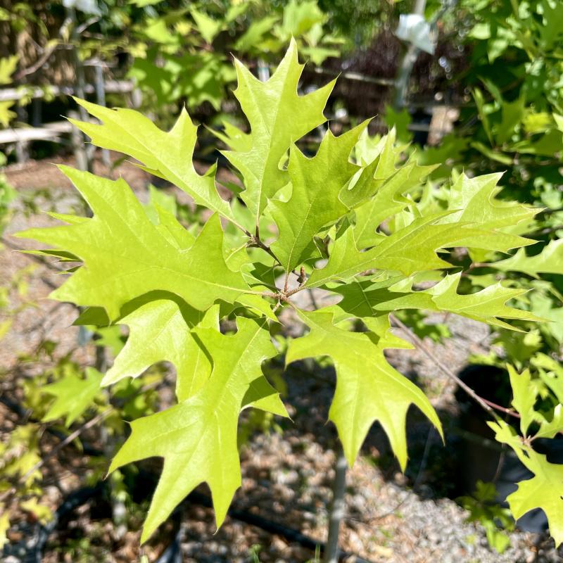 Popular due to the attractive pyramidal shape. Pin oak trees brighten the fall landscape with crimson-red leaves that gradually turn coppery-brown in the winter.