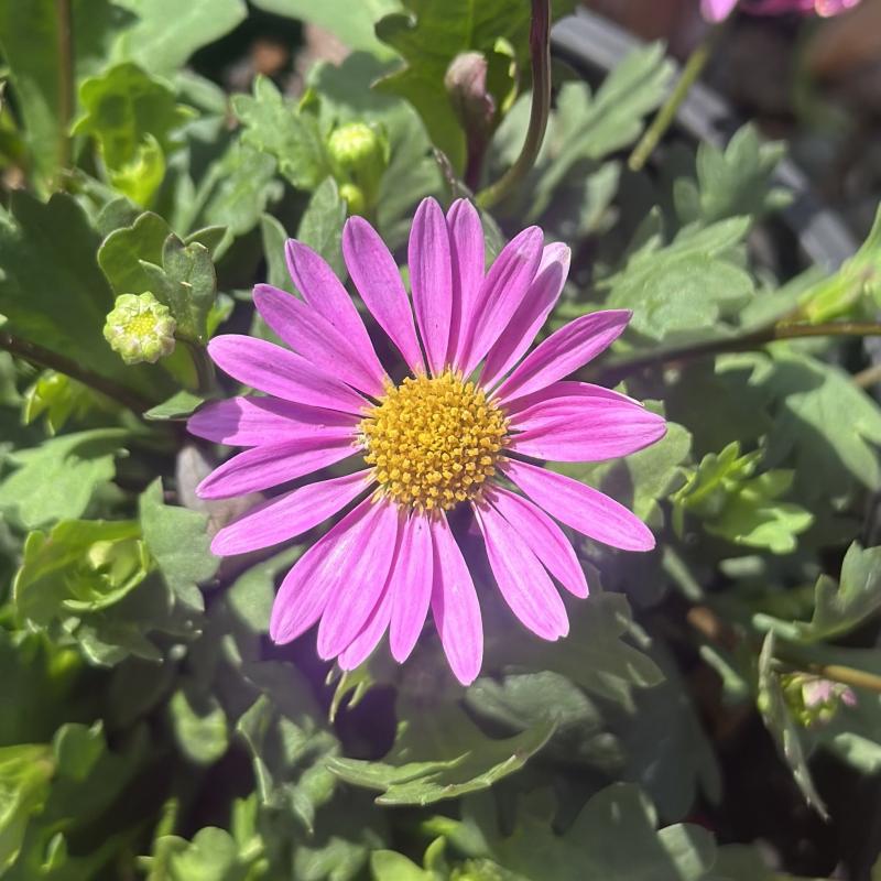 Showy, lavender-pink flowers with a bright yellow center sit above a deep green foliage. It's small, compact size makes for great container or border plantings.