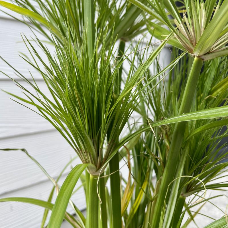 Papyrus Little Tut is a great plant for wet areas or in ponds. The soft, wispy foliage provides a unique effect around water features.