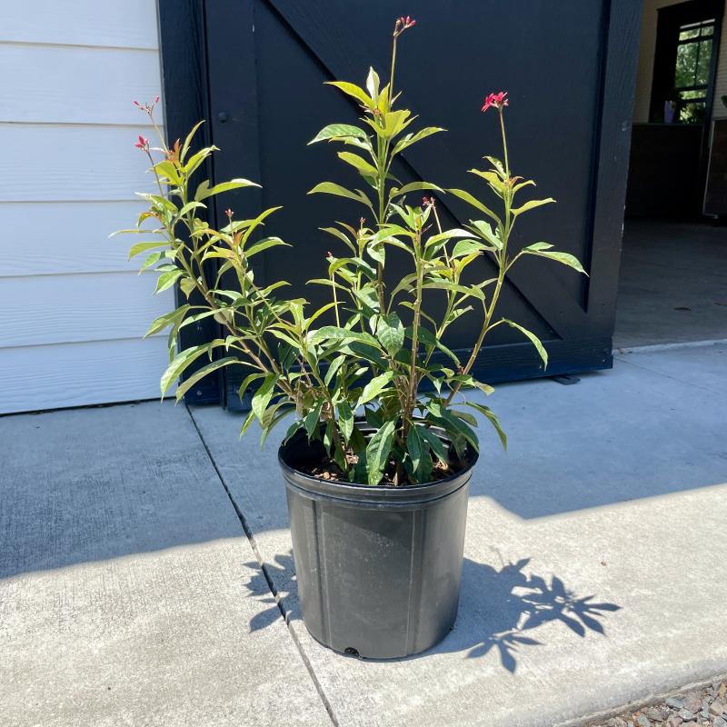 Red flowers year-round make this a great centerpiece for a butterfly garden. Prune to shape as a hedge or small ornamental tree.