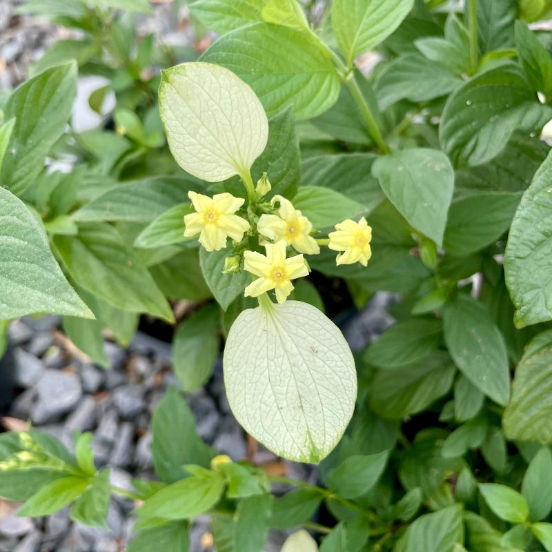 Creamy yellow flowers add color and interest to any tropical shade garden. For a great color combination, try planting with low-growing Purple Queen.