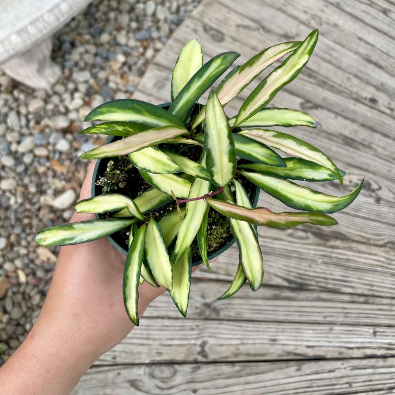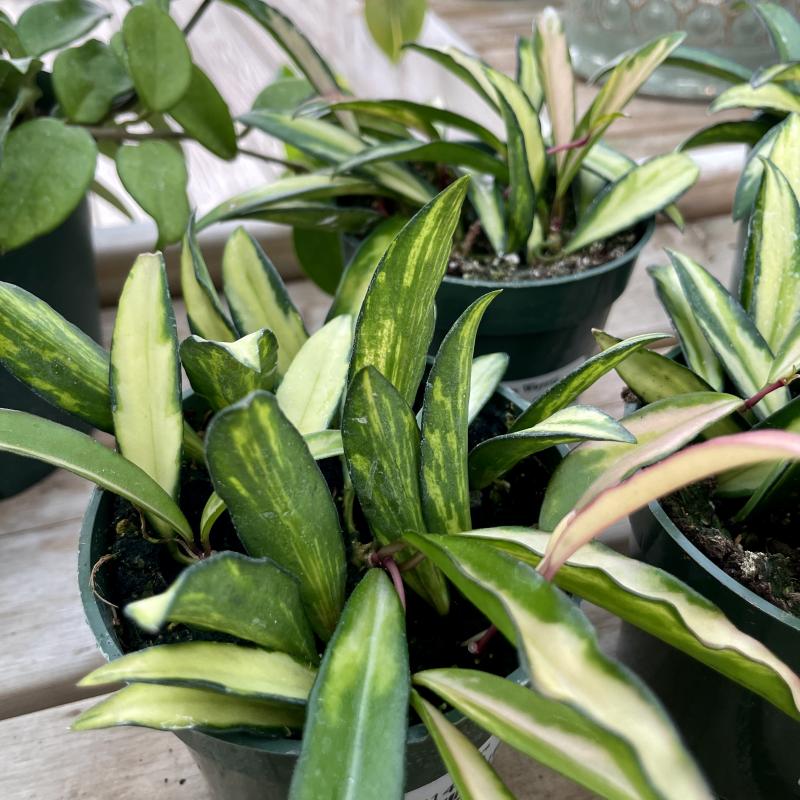 Slender leaves feature pink, yellow, and green splashes on this compact plant that slowly trails. Great for small spaces, bookshelves, and end tables.