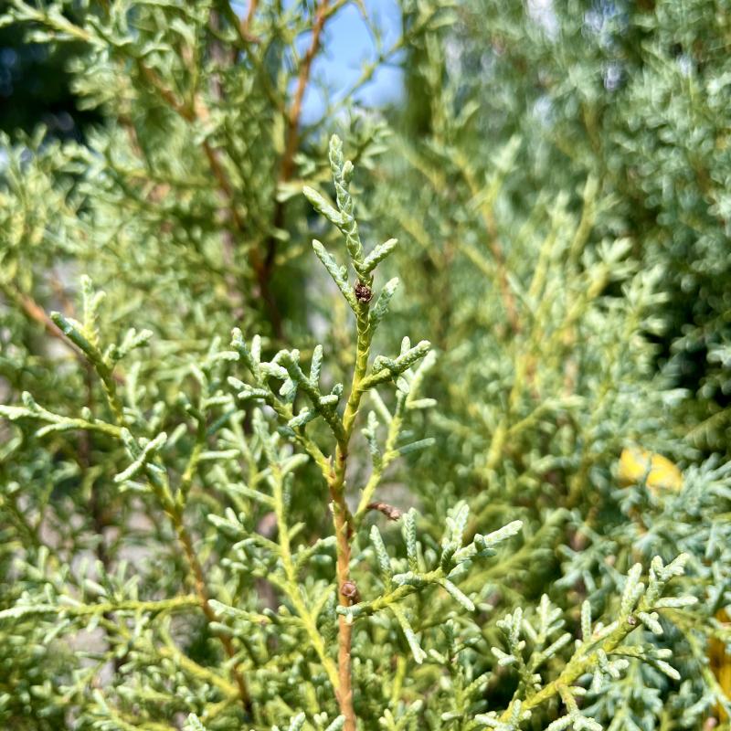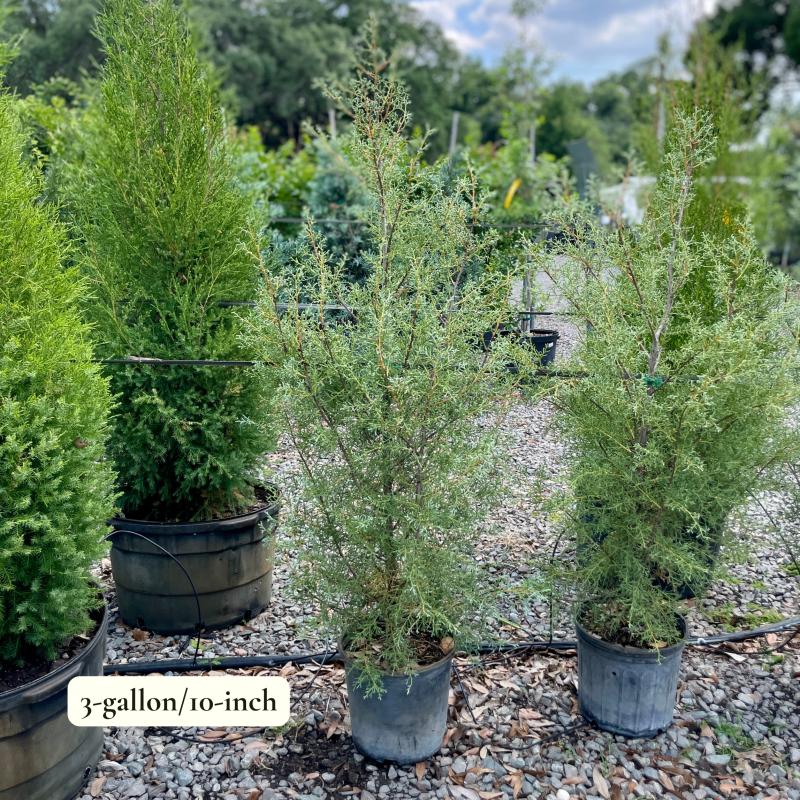A lovely evergreen that thrives in sunny, dry areas. The blue-gray foliage will add an extra dimension to your landscape. Foliage starts more green on younger trees (3-gallon pot) and eventually turns more blue (15-gallon pot).