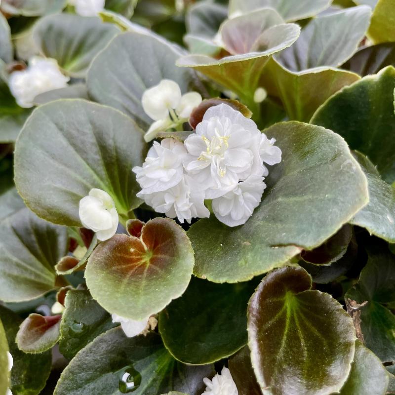 Beautiful double flowers dot the dark, multi-colored foliage on this flowering annual. Deadhead and prune broken foliage to promote more growth. Great in containers or seasonal garden beds.