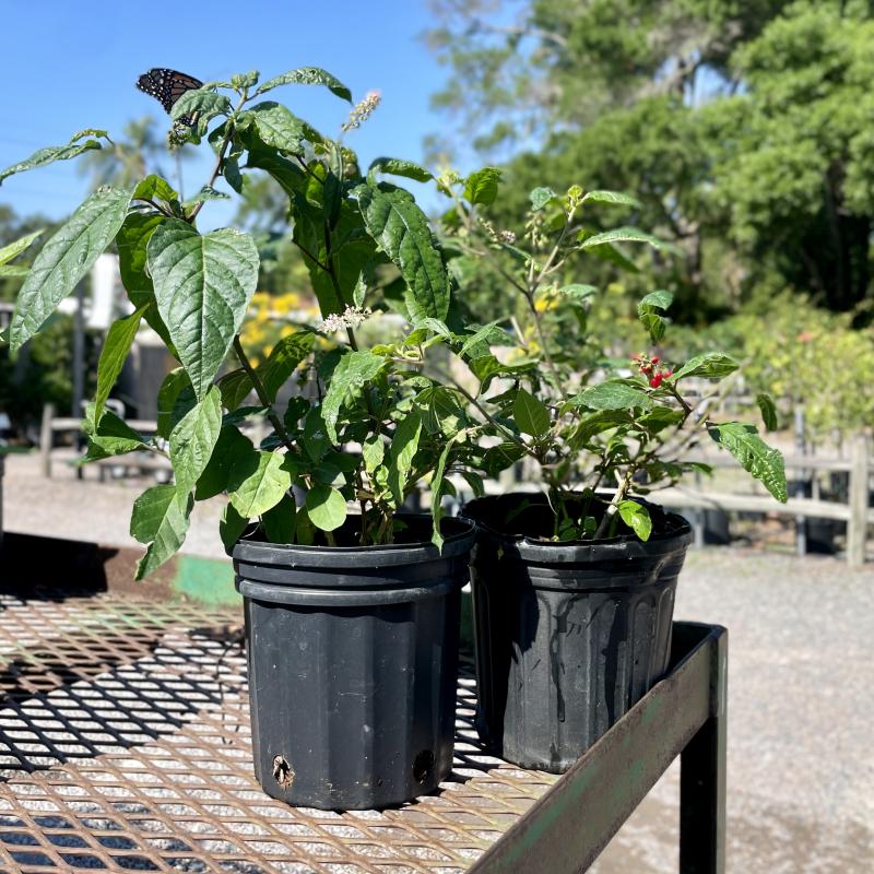 A long-lived native perennial with showy white and pink flowers followed by red fruits. Flower and fruits appear throughout the year.