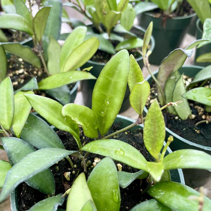 A classic hoya with thick, waxy, pointed leaves. When given proper care, hot pink flower spheres can bloom.