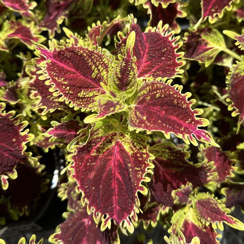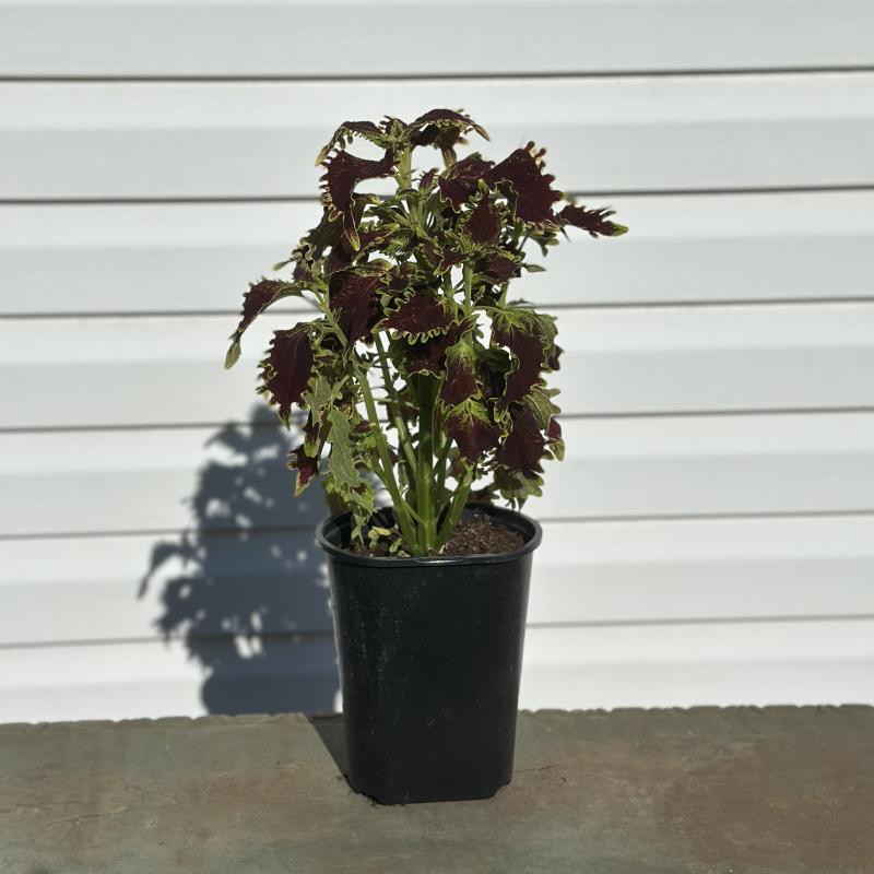 The Solar Flare Coleus features fiery red-orange leaves with deep burgundy accents. Heat tolerant and low maintenance, it adds bold color to gardens, borders, and containers.
