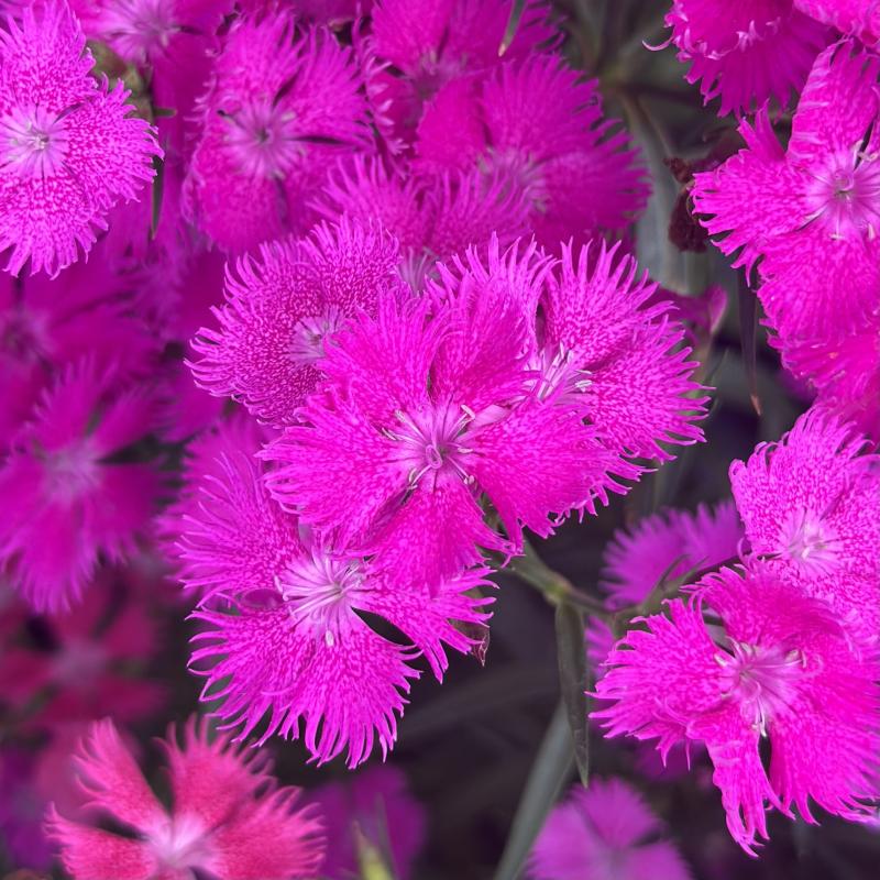 Bright pinky-purple flowers sit above these tall dianthus with pointed foliage.