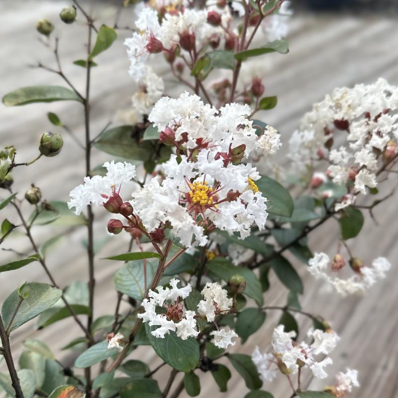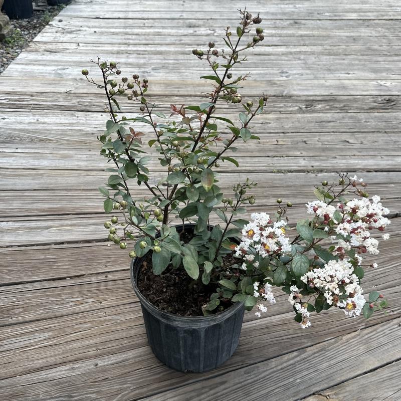 This compact Crape Myrtle has soft, creamy white blooms and dark green foliage. It's heat tolerant, disease resistant, and perfect for adding elegance to landscapes and containers.