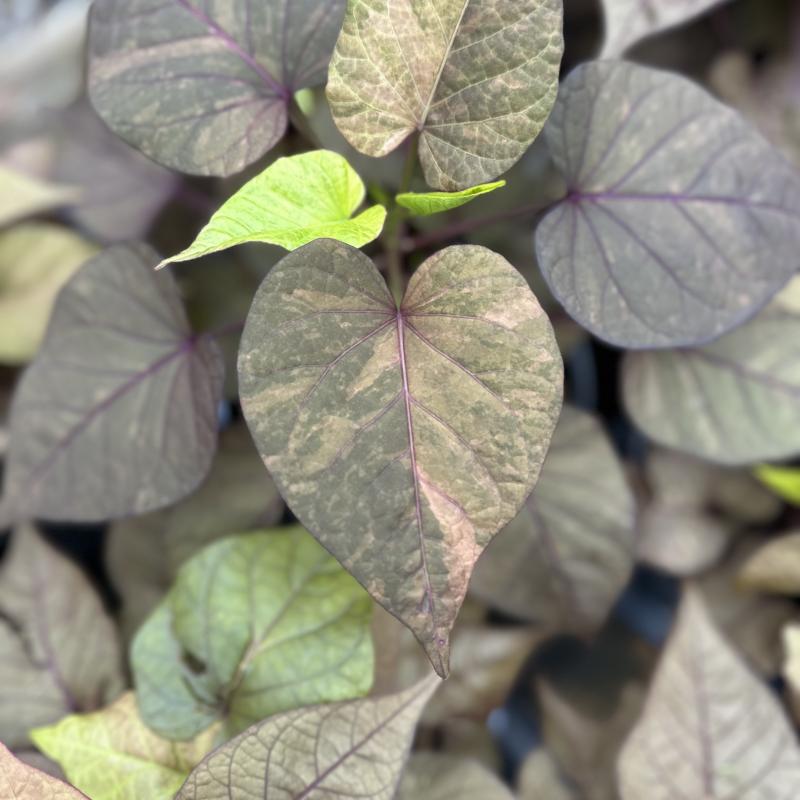 This multi-colored variety of sweet potato vine makes a rich groundcover or a delightful spiller in the "spiller-thriller-filler" container combination.