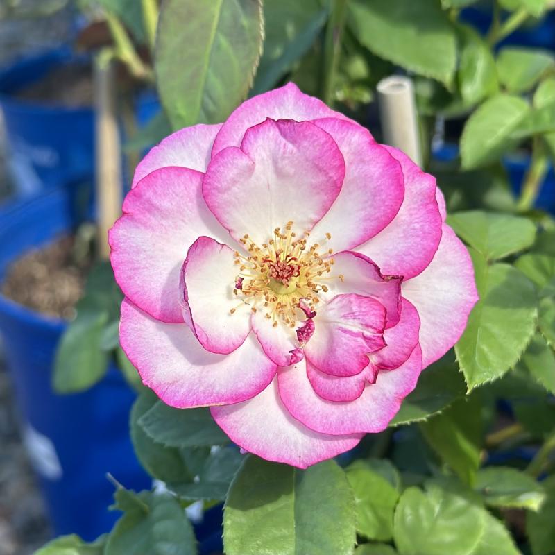 This rose’s pleasant personality will be the center of attention in any garden.  The base color of this rose is white with vibrant blended pink edges. Long, sturdy stems make this a favorite for cut-flower arrangements.