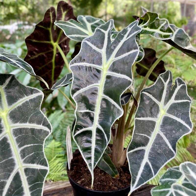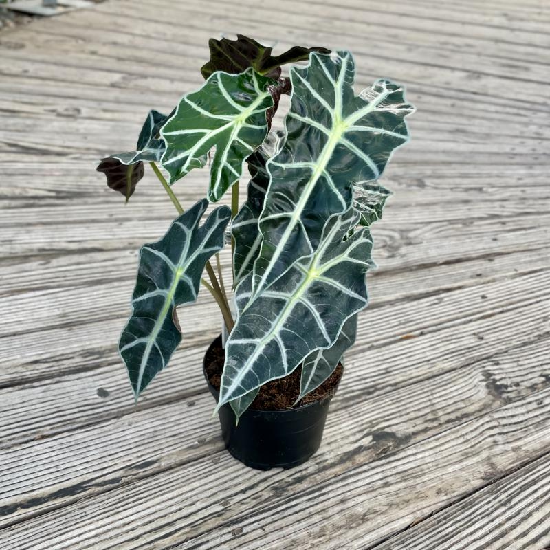 Thick, textured leaves make this funky houseplant exactly that. Plant in rich, well-draining soil and keep it moist, but not soaking wet; alocasias don't like going bone dry. Remove expired leaves to encourage new growth.
