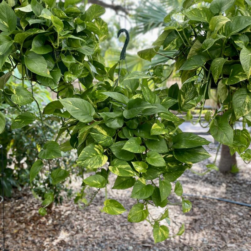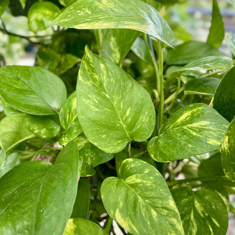 Easily prune the vines to help keep the plant bushy or let them trail on and on and on. This plant is also great to decorate with: use small hooks to have it climb up a wall, wrap around a mirror, or drape from a shelf. The possibilities are endless with pothos.