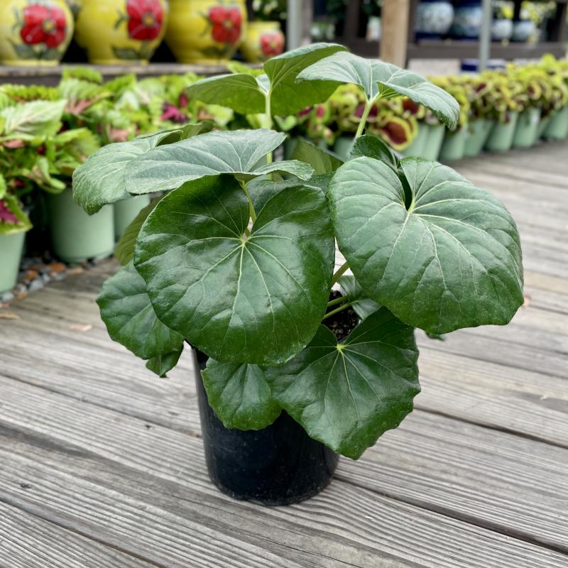Sometimes called the leopard plant for the spots that appear on the leaves, the lush foliage makes this a beautiful plant for lightly shaded areas. Expect a pillar of yellow flowers to emerge come summer.