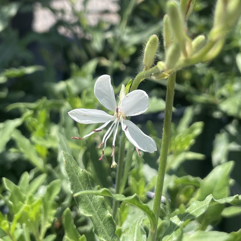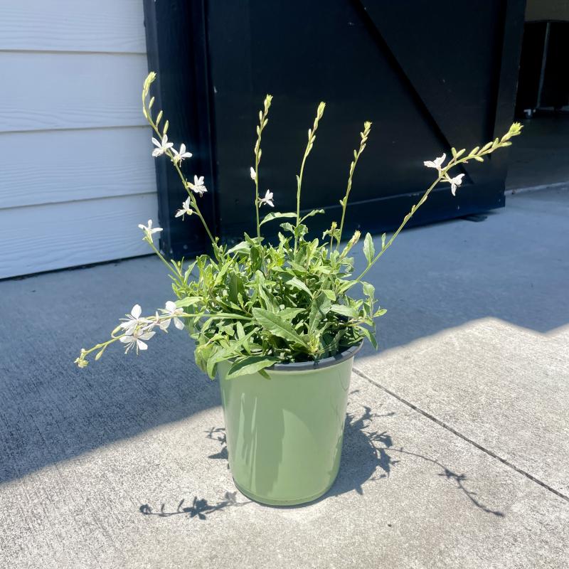 White butterfly-shaped flowers stand above the low foliage of this easy plant. Great in hot, humid areas.