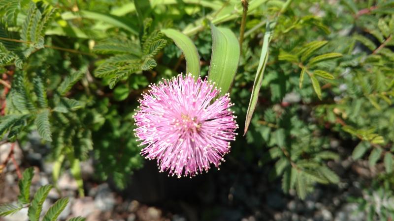 A low-growing groundcover with delightful puffball flowers; blooms throughout the summer. Its foliage is also fascinating: when touched, it curls up. Scientists believe it's a response to predators or a method to retain moisture. Very drought-tolerant and a lovely alternative to grass since it's native to Florida.