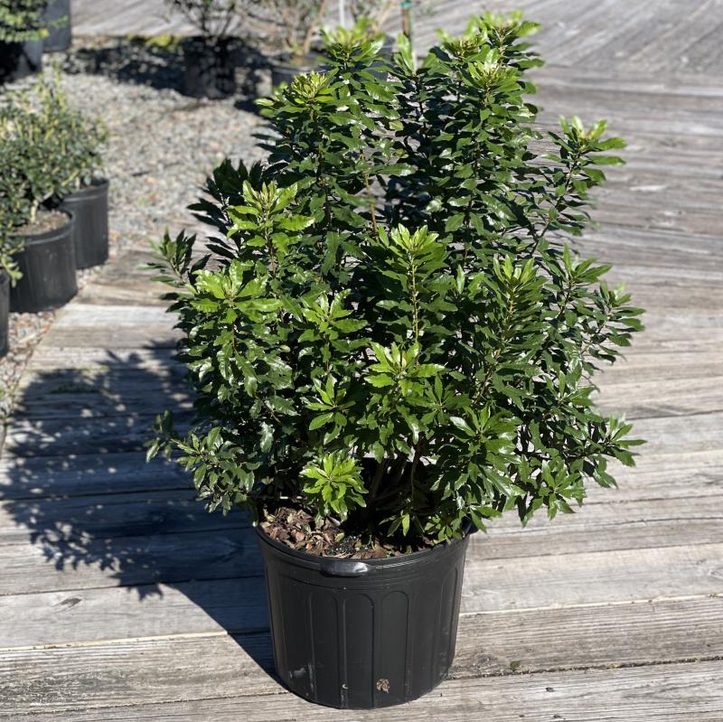 Glossy olive green leaves blanket this dense, upright, evergreen shrub. An easy-care Florida native, it can also be trained into a small tree. Deer resistant.
