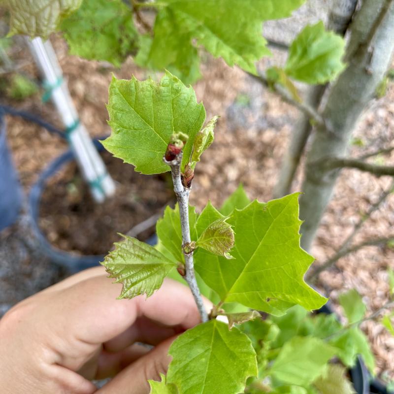 A rapid-growing, wide-spreading shade tree that works best in large areas. Features cream and olive bark that peels adding interest in winter and summer.