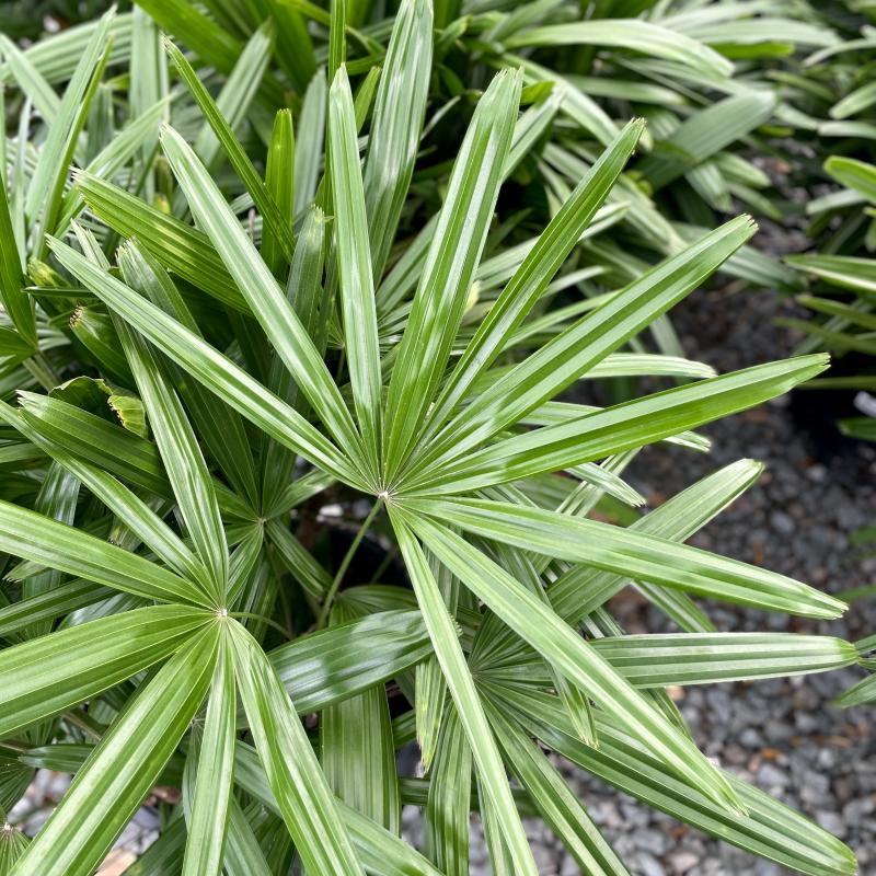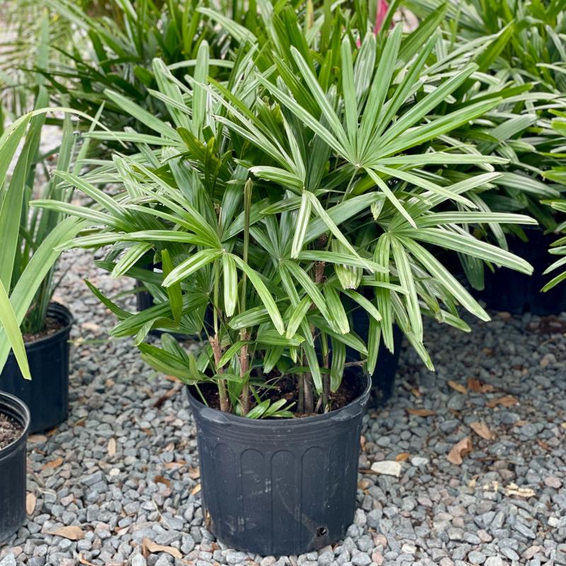 A beautiful palm with stiff, pleated leaves that resemble a lady's fingers. It grows well in low-light conditions.