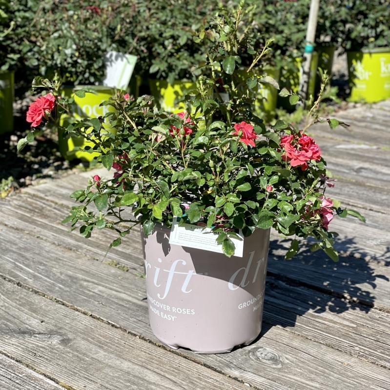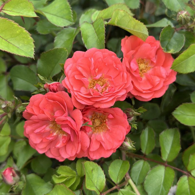 Bright coral-orange blooms cover this small mounding shrub from spring to fall. This disease-resistant plant is easy to care for and adds amazing color to sunny areas of your landscape. Deadhead to promote more flowers and fertilize at least seasonally with a balanced mix.