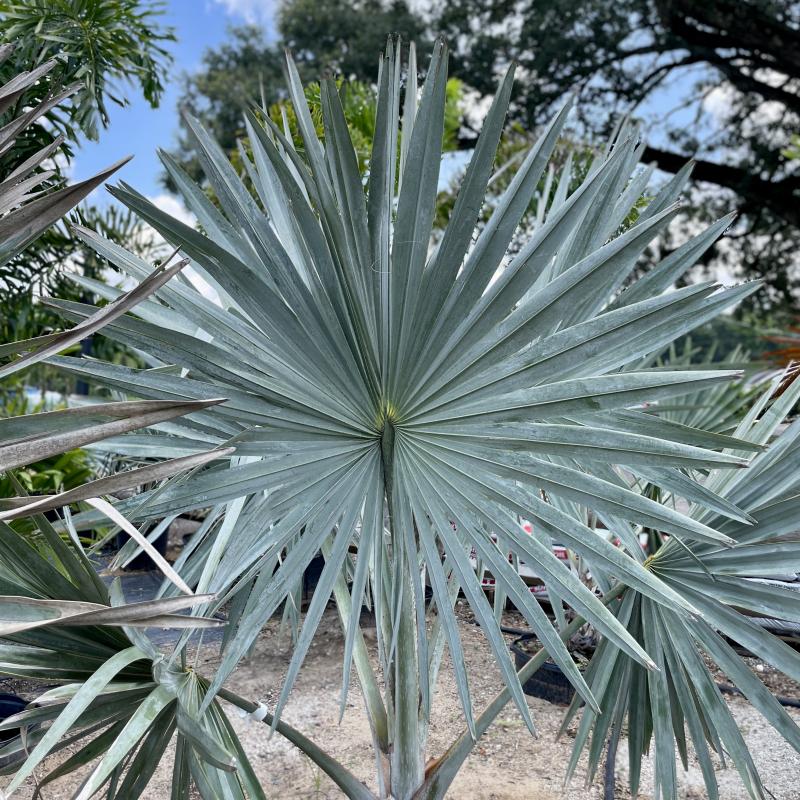 The massive silvery, fan-shaped leaves on this palm make it a dramatic landscape centerpiece.