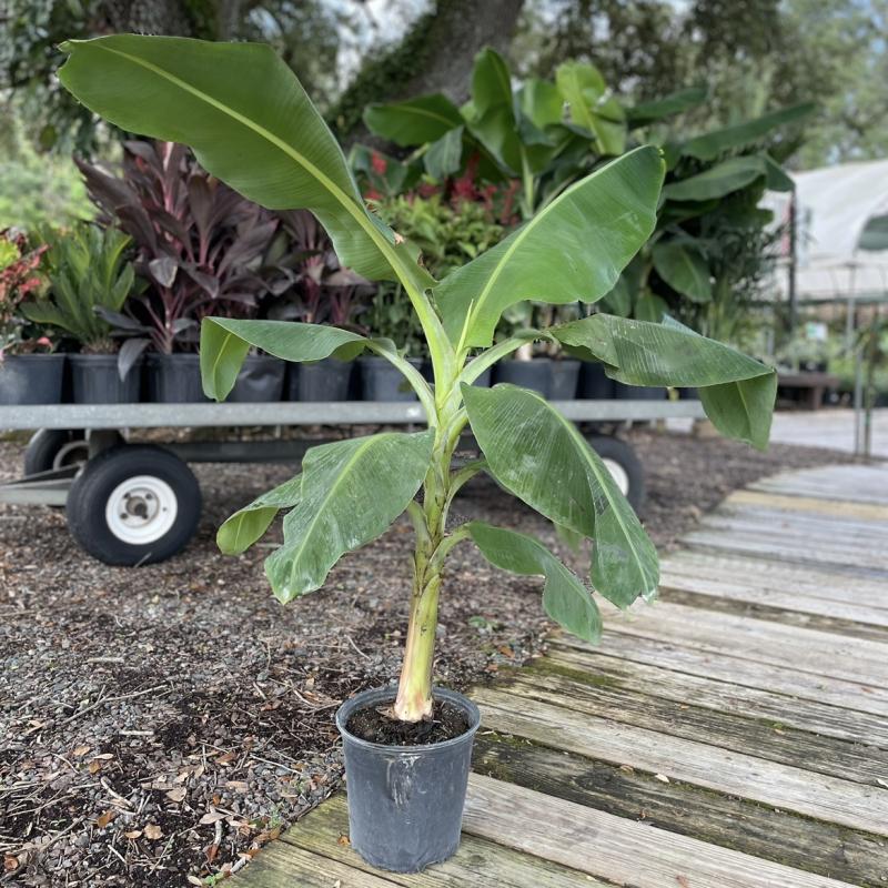 A banana similar in size and taste to what you find in the grocery store. It is a large tree and can produce 150 lbs of bananas! Once it flowers and fruits, the stalk will die back but new pups and eventual trees will emerge, supplying you with more bananas. Best grown in a spacious garden bed.