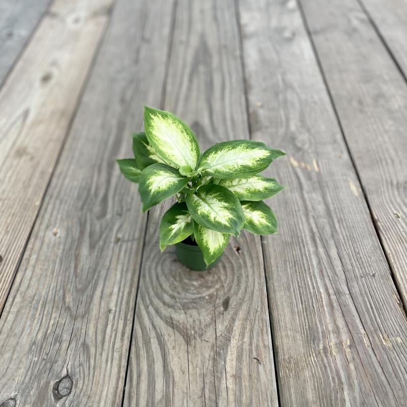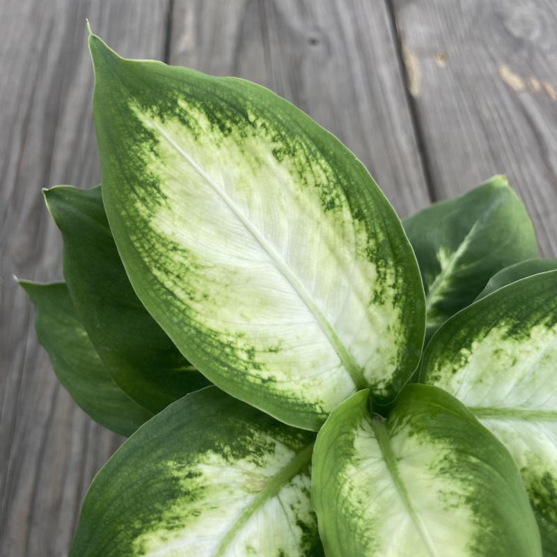 Broad, highly variegated leaves make this dieffenbachia stand out in any plant collection. At full maturity, this cutie can actually reach three feet tall with leaves several inches long and wide. Keep in brighter light to encourage more white in the leaves. And note, this particular batch features lots of new growth, especially at the base of the plant, meaning it's bound to be insanely lush and even more gorgeous.