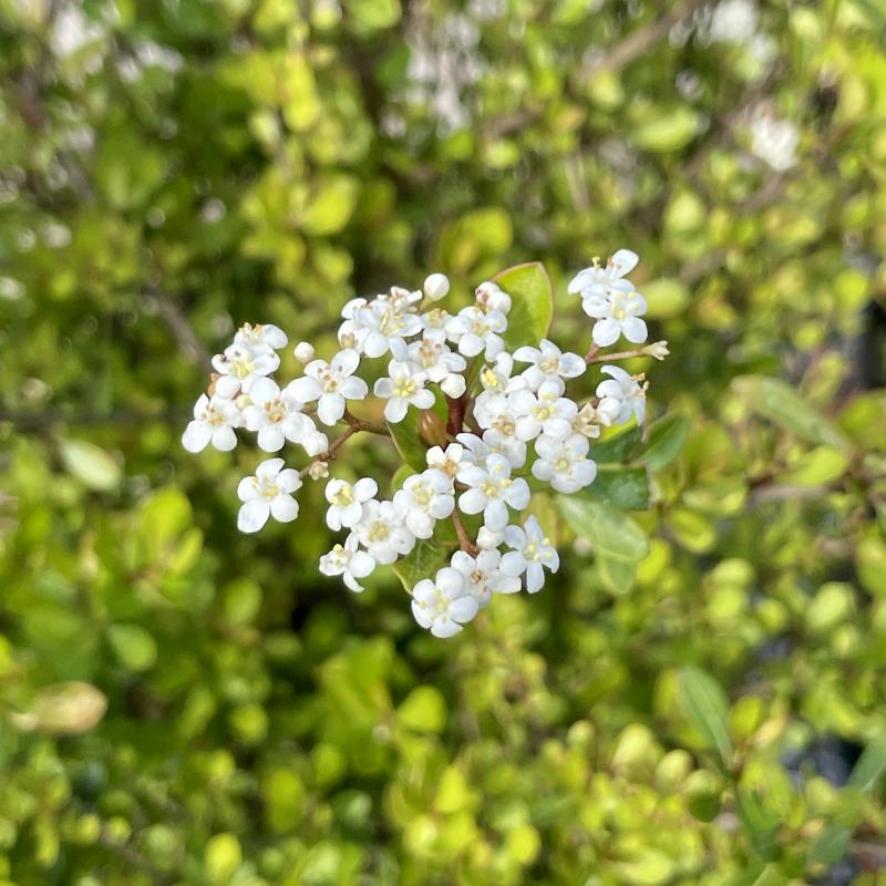 The dense green foliage of this easy Florida native gives way to clusters of white flowers in springtime. Prune the flowers once they expire to encourage new buds. Conduct light-pruning year-round and hard prunes in late winter/early spring.