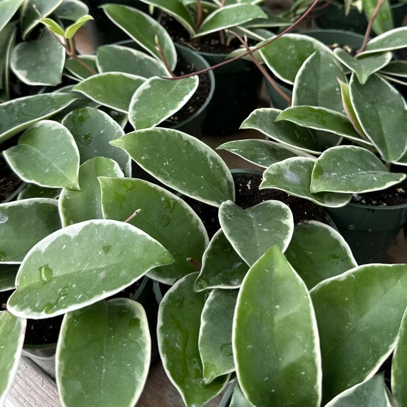 Deep green leaves accented by white along the edges. Great in hanging baskets.
