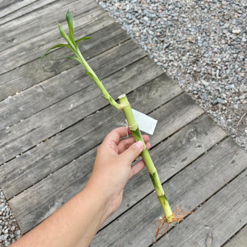 We call it bamboo because of its appearance, but this single cutting is actually a dracaena. Keep in water longterm or transplant into a container with drainage and well-draining soil once the roots are substantial.